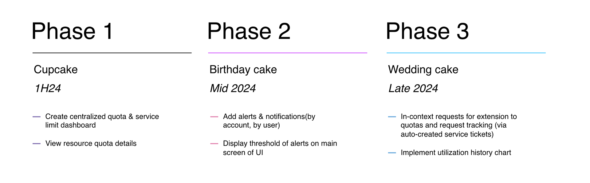 We designed visually distinct tiles for the resource categories and highlighted severe quota numbers. These tiles serve as the primary interface for risk triage, helping users quickly identify, select, and drill down to the specific resources that may require a quota increase request.